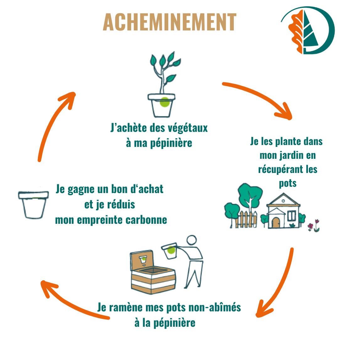 En 2024, les pépinières Duchesne ont mis en place le recyclage des pots. En effet, les pots en plastique, souvent encore en bon état, peuvent être réutilisés. Ils sont récupérés sous conditions, à voir directement par téléphone ou à l’accueil de la pépinière.